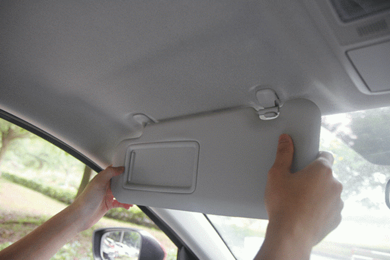 5. Правильно используйте солнцезащитный козырек. В большинстве автомобилей имеется длинный узкий солнцезащитный козырек на потолке передних сидений. При движении навстречу солнцу можно опустить козырек, чтобы уменьшить блики. Козырек можно поворачивать под разными углами; водителям рекомендуется регулировать его в зависимости от ситуации. Примечание: Не открывайте козырек полностью вниз на 90 градусов, так как это может затруднить эффективный обзор светофоров и дорожной обстановки.